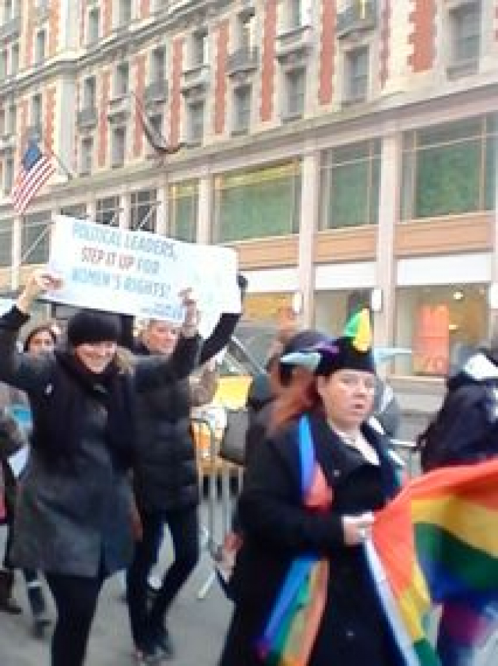 En cualquier país del mundo,ocupar las calles, es una cuestión política, y es una forma de corporeizar las luchas de las mujeres. Hasta no hace mucho tiempo, las mujeres solo fueron sujetos integrantes de la vida privada y familiar. Y esta vez, las calles de Manhattan se convirtieron en una confluencia oceánica representada por las mujeres de todos los continentes que se hicieron presentes con sus reivindicaciones. El matiz singular fue la importante concurrencia de varones y familias enteras que marchaban, o aquellos transeúntes y trabajadores que salieron a aplaudir a las manifestantes.