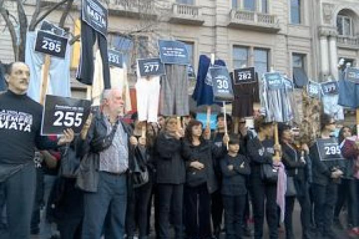 En un momento, un rostro impreso en una fotocopia blanco y negro se acercó hacia mí. Era una tímida pancarta de no más de 20 por 30 centímetros y la llevaba una mujer. ¿Quién es?, pregunté. "Quien era. Era mi hija, y se llamaba Natalia Verónica Ruiz, la mataron en enero del 2010. La mató su pareja y luego se suicidó él". La mujer, al decirlo, se quebró. Entonces tomó aire y contó que busca justicia, que ahora es ella quien cría a la hija de Natalia, que hoy es una niña de 9 años. También recordó que con su hija vivían en San Salvador de Jujuy, y que vinieron a Buenos Aires para buscar algo mejor: "Quise una buena vida para ella, pero mirá como terminó". El caso de Natalia no está contabilizado, nunca apareció en los medios. Nos despedimos con un abrazo en medio de una multitud dispuesta a separarnos.