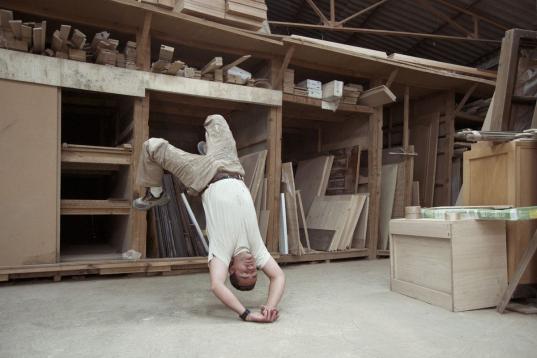 Suspendidos en el aire, con los ojos cerrados o la mirada perdida, en posturas incómodas, flotando en un estado de coma laboral y personal por la pérdida de sus puestos de trabajo. Así permanecen los protagonistas de las fotografías de Álvaro Martínez Alonso (Burgos, 1983) que se exponen en Colonia.