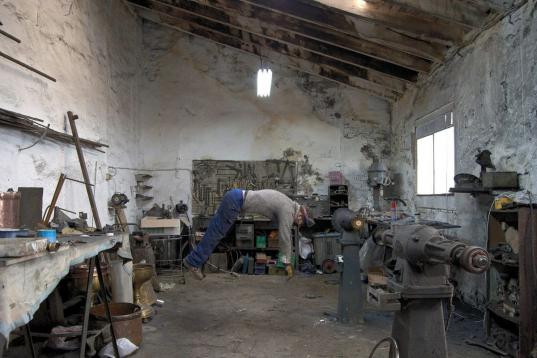 Álvaro inició su proyecto En suspensióncuando la crisis comenzó a golpear con fuerza a dos de los sectores más afectados por la recesión: la industria y la construcción. "Motivado", explica el autor, "por mis relaciones, mi familia, mis amigos, el barrio donde vivía en Burgos, una ciudad muy industrial, donde la mayoría de mis conocidos trabajaban en talleres o fábricas, comencé a retratar a trabajadores de la industria". Y más tarde, empezó a fotografiar a las nuevas víctimas de la crisis tras los recortes y los despidos en Sanidad, Educación, I+D+i y aquellos eslabones más vulnerables de sectores ya tocados como la agricultura, hostelería, etcétera.