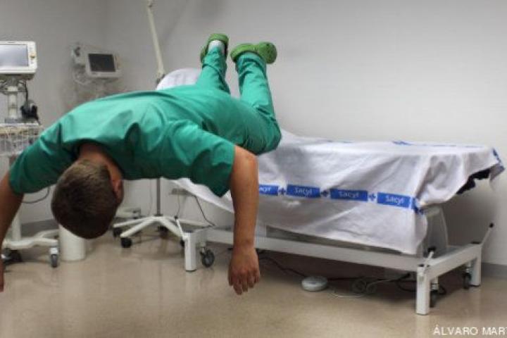 César, Carlos, Iván, Óscar, Leticia o Inés flotan en escenarios relacionados con las profesiones de cada uno de ellos. Inertes, permanecen suspendidos a la espera de que un cambio, que hoy sigue siendo imprevisible, les permita enderezarse y retomar sus carreras tras un larguísimo paréntesis que afrontan como si fuera un estado de hibernación. Su realidad es similar a quienes permanecen paralizados en los vídeos de la muestra Parados por el mundo, en la que juega también "con la metáfora del estatismo, incapaz de moverse, mientras todo a nuestro alrededor gira sin descanso. Mientras nosotros no podemos movernos, el mundo se mueve demasiado deprisa", relata la comisaria Norma Blanco.