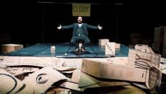 La segunda de las obras, solo tiene un actor, el citado Carlos Sans. Rematadamente bueno tanto en lo gestual, como en colocar la frase, la palabra, el chiste. Lo primero ya se sabía. Lo segundo llamará la atención y sorprenderán las dotes que tiene para la stand-up comedy. Y poco más, ya que la escenografía es un fondo de colores chillones, alguna vez molesto por intenso, que de vez en cuando cambia a una foto proyectada para recordar los números de Tricicle o la situación que está describiendo.