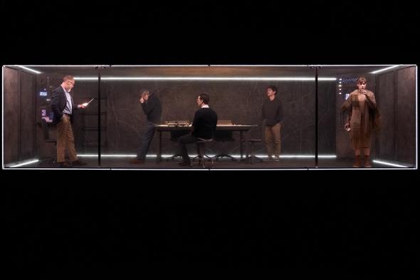 Menos mal que, como se ha dicho, este montaje no se olvida que es una obra de texto, de palabra. Y que, por tanto, necesita un elenco eficiente. El de esta propuesta lo es. Eficiente y aplicado a lo que le han pedido que hagan. De los que destaca, como viene siendo habitual, Jorge Kent, que haciendo lo que le pidan que haga, casi siempre es capaz de dotar de humanidad a sus personajes. Y que aquí lo hace cuando su personaje se vuelve humano en la intimidad de su cubículo, pero no cuando está construido de forma unidimensional, como cuando lo destituyen del cargo y sigue trabajando en equipo como si nada.