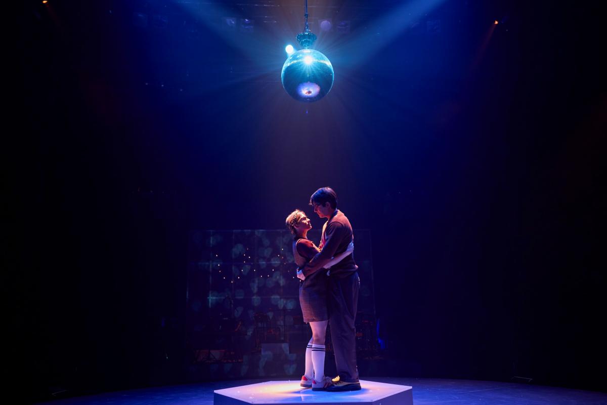 Aquí el problema es que la producción es demasiado grande para la historia tan pequeña que se cuenta. Seis actores, de los que cada noche se elegirán dos al azar para representar la función, lo que es un problema si la pareja elegida no es capaz de crear química entre ellos. A los que se añade dos maestros de ceremonia que cambian en función del día, y que dirigen una pequeña banda formada por los actores que no han salido elegidos para representar la obra. Una banda que tocarán una banda sonora también elegida al azar al principio.
