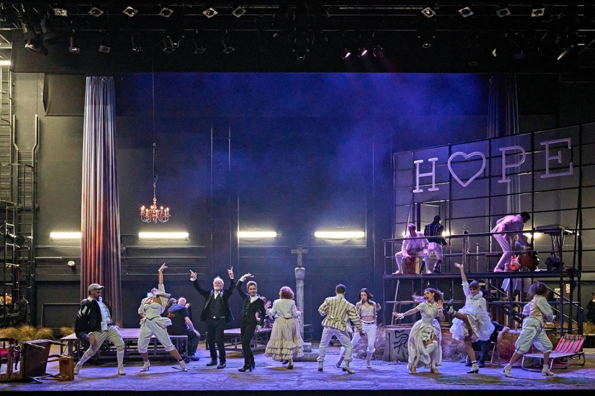Además de un vestuario que señala la época en la que sucede la obra a la vez que remite a un elegante estilo streetwear que podría haber salido de Vinted o Zalando. Diversidad de formas y colores corporales, como si fuera un de los anuncios icónicos de Benetton. Y música en directo, al estilo de una banda de amigos que tocan pop, a veces melódico, en el garaje de su casa o en el garito donde se reúnen de forma habitual.