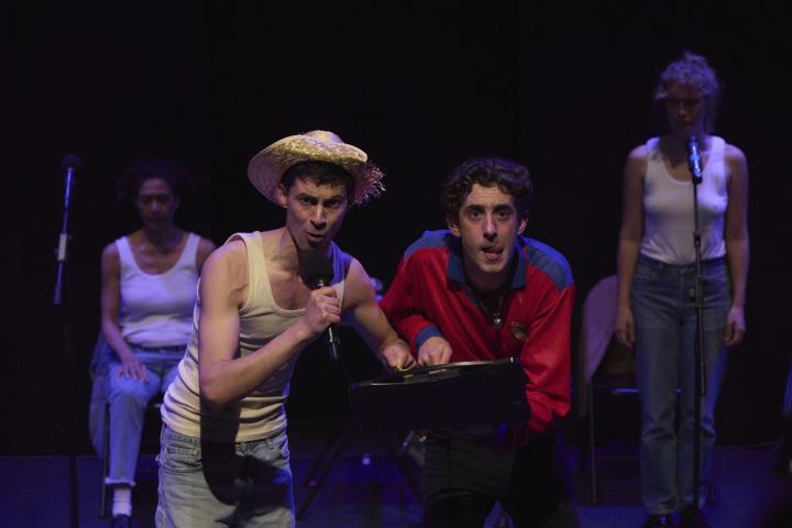 El resto son mínimos elementos escenográficos. Unas sillas, como en el Vania 1 de VaniaXVania. El uso eficaz de unas puertas al fondo del escenario. Una gran mole que sirve de barra de bar o garito de conciertos, el famoso KGB, o de buhardilla. Que si bien es cierto se van complicando es decir aumentando en elementos, que hacerse adulto hace que la vida se haga más compleja sobre todo por la experiencia, se mantiene contenido. Poniendo en práctica eso de que menos, es más.