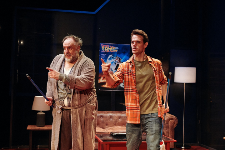 Todo ello planteado en el formato de escenas que se suceden con rapidez, lo que le permite introducir mucho humor cuando la cosa se pone intensa. Y hay momentos que se pone. Sobre todo, en el inicio, donde hay más disquisición filosófica, difícil de seguir, probablemente porque es la introducción de la obra y, debido a como se anuncia, se espera la comedia. Es decir, humor desde la primera escena, en vez del planteamiento sobre la toma de conciencia de su finita juventud tras la que solo le quedará rodar y rodar cuesta abajo.