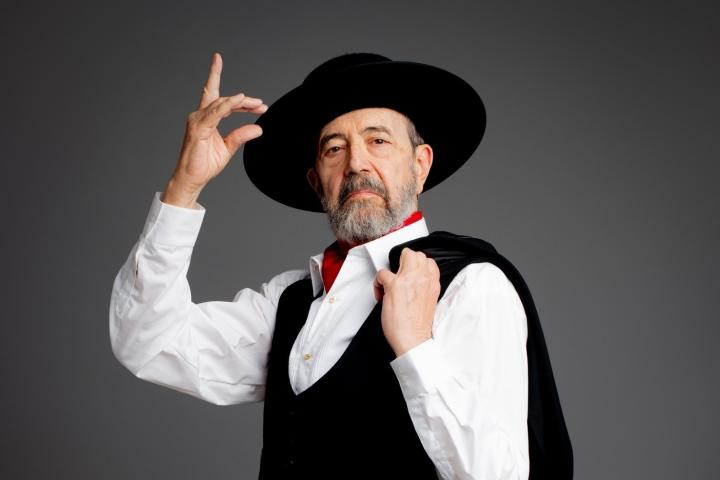Para contárnoslo, el equipo artístico ha montado un tablao redondo encima del escenario. Donde Miguel Rellán sale vestido de flamenco, con sombrero y olé. Mientras, cuenta las peripecias y aventuras de su personaje, en un texto que se sabe pero que todavía no ha hecho suyo, no ha hecho propio corporalmente. Algo que se nota y se siente desde la butaca sobre todo cuando tiene que marcar pasos de baile. Pues tiende a colocarse para hacerlos. Como la mímica y gestos con lo que acompaña alguna de las cosas que dice.