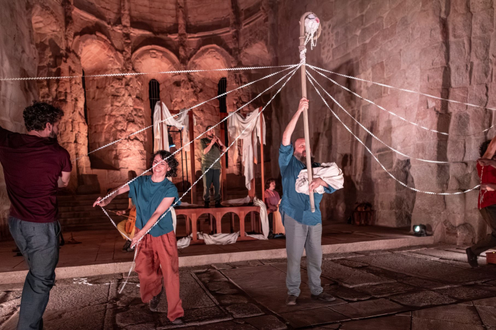 Propone la fresca porque las representaciones empiezan cuando ya comienza a caer el sol. Y viajar porque es un espectáculo pensado para hacer en monasterios en ruinas parcialmente restaurados, que habitualmente están perdidos por la geografía nacional y localizados lejos del mundanal ruido, aunque estén cerca de pequeñas poblaciones.