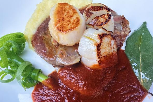 MORROS DE TERNERA CON VIEIRAS AL CHILE AHUMADO