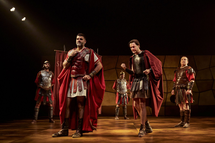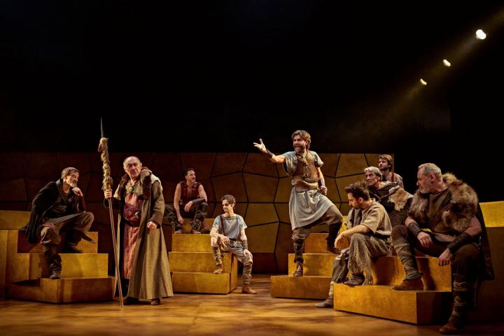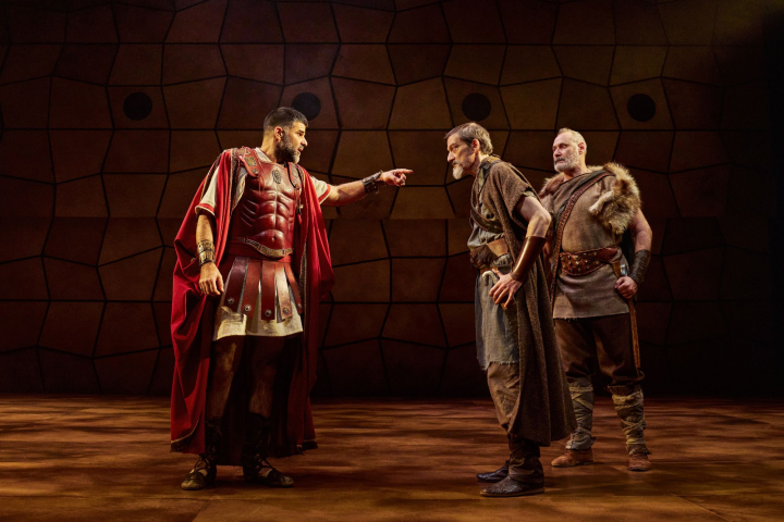 Tampoco está mal el vestuario, si se descarta que tanto romanos como numantinos vayan de época, pero los personajes ideales y no reales vistan de esmoquin. Con elegancia actual. Otra cosa es la escenografía con ese muro que parece una cortina de hexágonos rígidos que se baja y se levanta para dejar ver un cielo estrellado y, alguna vez, a un personaje. O esas masas de escalones que se pueden mover por el escenario, alrededor del que se harán varias escenas. Pocos elementos que, curiosamente, dan la sensación de complejidad innecesaria cuando se ha decidido por una dirección de actores tradicional. De esos que te hacen ver lo que sea con solo decirlo y su presencia en escena. Añádase una música que no acompaña.