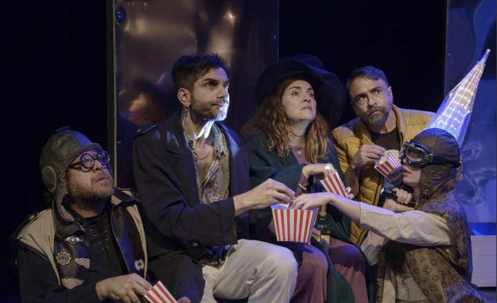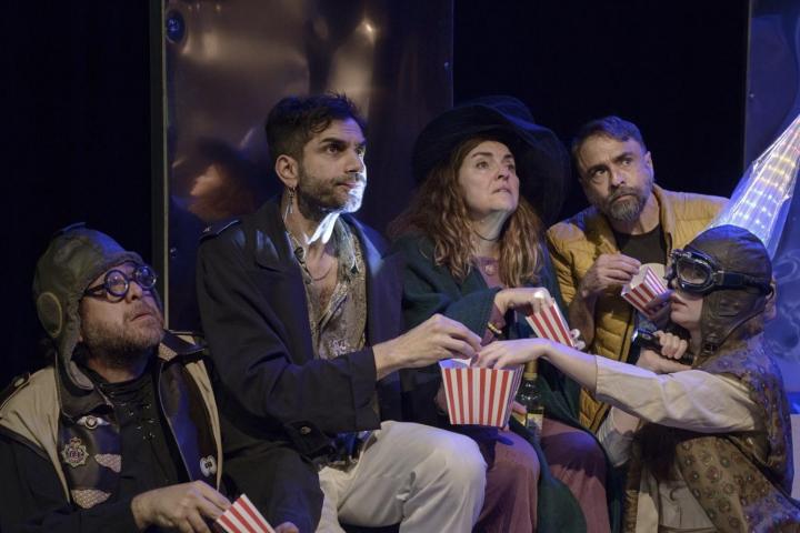 A lo que contribuye el elenco al completo durante toda la función y su manera de decir un texto enrevesado en el que lo poético baila con lo filosófico. Y también la imaginación desbordante de César Barló, que le permite crear escenas como el caótico y confuso carrusel inicial alrededor de la columna de la entrada del teatro. O poner a los espectadores reales que asisten al teatro al otro lado, como si estuvieran en el backstage, para escuchar lo que se supone sucede en las butacas cuando el arte se da de bruces con la realidad cotidiana.