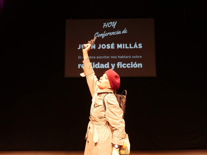 Curiosamente, también para hablar de la cotidianeidad. Una cotidianeidad surrealista que Juan José Millas cuenta en sus columnas de los viernes en El País y sus novelas. Paradojas en las que con la lógica del lenguaje se rompe toda lógica de la vida. Un monólogo en el que la protagonista suplanta, a mano de pistola, al autor de la obra, para dar una conferencia que le ha pedido una AMPA de un instituto. Provocando una risa basada en la extrañeza y la reflexión.