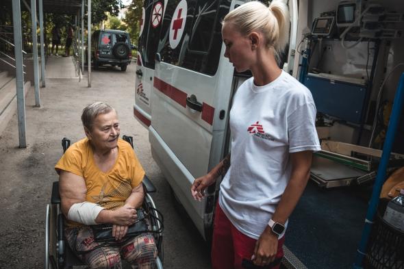 “Como resultado de un ataque en Kostiantynivka, en Donetsk, el 9 de agosto, 14 personas murieron y más de 40 resultaron heridas. Fueron alcanzados un supermercado y una oficina de correos en el centro de la ciudad, donde había muchos civiles. Hubo decenas de heridos. Los médicos de MSF ayudaron a curar y suturar heridas. También trasladamos a dos heridos graves a Dnipro en ambulancias. Con una afluencia constante de pacientes con traumatismos que necesitan ser derivados, los equipos de ambulancias se aseguran de que los pacientes sean trasladados a hospitales donde puedan recibir la atención especializada que necesitan”, me explicó Christopher Stokes, coordinador de emergencias de MSF en Ucrania.
