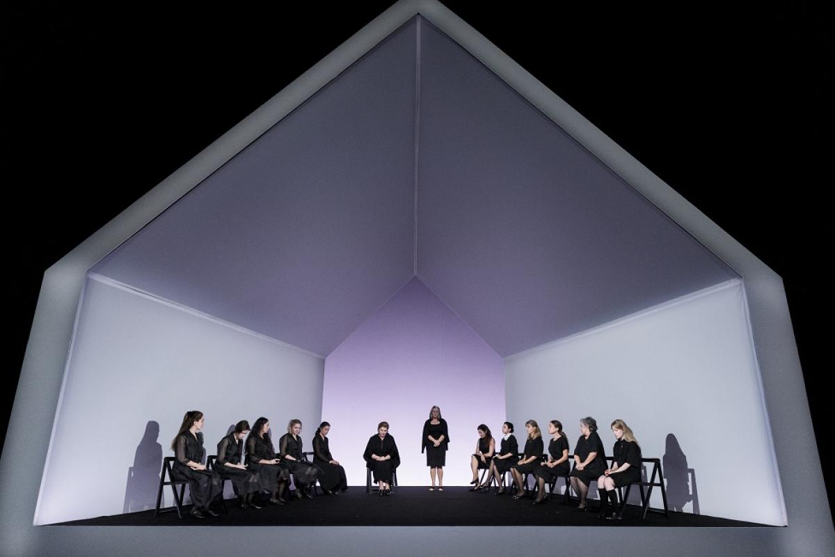 ¿Cómo lo intenta Sanzol? Con el tecno que se oye en los interludios musicales que hay entre actos. Y con la iluminación algo fluorescente de esa escenografía lechosa que parece una casa convento contemporánea.