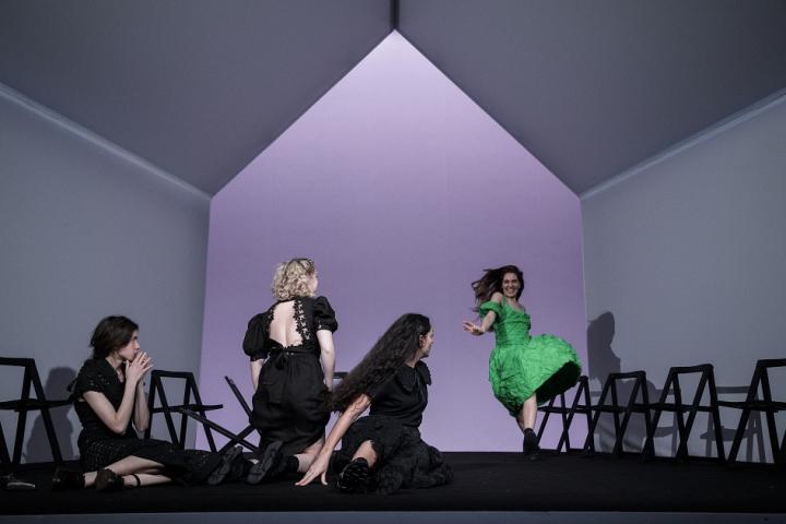 A partir de ahí, son puro teatro. En el sentido de que lo que preocupa es cómo poner en escena para contar la historia. Y, en el caso de Sanzol, el fracaso es estrepitoso. Y eso que mira a referentes que resultaron todo lo contrario, como Esto no es La casa de Bernarda Alba de Carlota Ferrer.