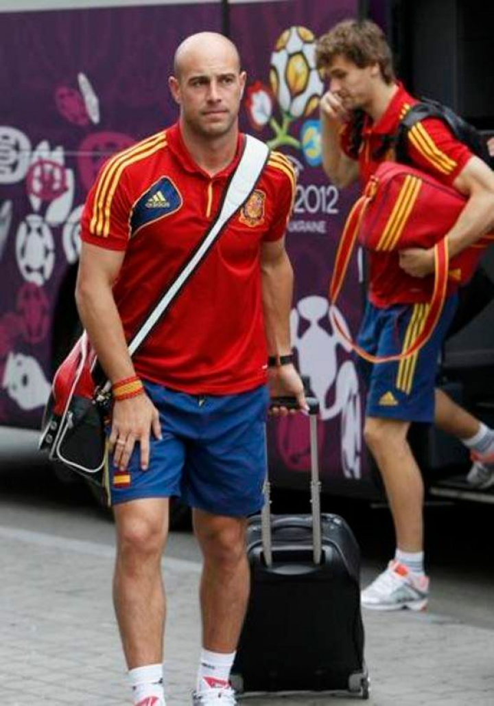 Comencemos por los porteros: Valdés, Reina y Casillas. Los tres están bien, es de reconocer, pero donde se ponga el potente Reina que se quiten los otros. Reina, aparte de su talento de comunicador, es uno de mis favoritos en una selección más bien canija de estatura, de músculo y de volumen. Es el hombre-hombre de toda la vida con un poco de carne de más, como debe ser, porque como diría mi manchega madre: "En lo gordo está lo hermoso", y esa ha sido siempre mi filosofía en lo que a gustos masculinos se refiere. Casillas es más guapo y Valdés más canalla, pero me quedo con Reina de lejos.