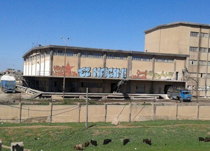 Un silo que sí está en uso. La pintada dice "¡Yo no me voy! La esperanza está en Rojava".