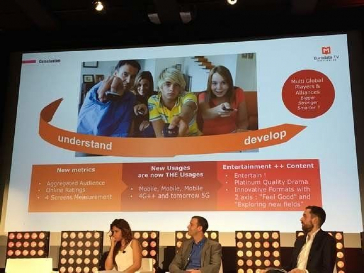 Comienza el show. Nueve de la mañana, la sala está abarrotada de gente. Eurodata TV, una empresa francesa que a pesar de su nombre analiza información de más de 100 países del mundo con datos de más de 7.000 canales de tv comparte las principales tendencias de la tv en el último año.