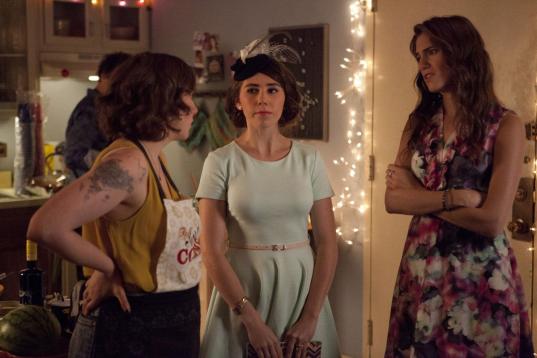 2- Realismo VS verdad. Mucho se ha hablado de los desnudos de Lena a lo largo de Girls. Una muchacha torpe en el vestir, con más celutitis que piel y con unos kilos de más. "Qué valiente y qué realista", dicen algunos. Creo que independientemente del físico de Lena, la sobreexposición de su cuerpo no hace ningún favor a la serie. Tengo la sensación constante de que Lena toma a sus espectadores por idiotas y/o por retrógrados. El pretendido "Eh, mirad, no sigo los cánones de belleza y no importa" para mí se convierte en un "Eh, miradme, miradme, miradme" a secas. Creo que tratar de enfrentar a sus espectadores con su amor por su falta de belleza canónica no es sino caer en el otro extremo de la balanza que es igual de peligroso. Al menos para mí el regodeo constante en el físico (ya sea por perfecto o por imperfecto) frena la acción y el recorrido de una serie.
