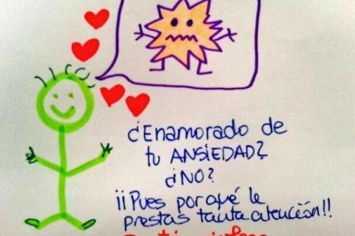 10. DEJA DE ENAMORARTE DE TU ANSIEDAD. Vamos, por todos los santos, ¡le prestas más atención a tu ansiedad que a tu amor! Te observas, te valoras, piensas, le dedicas tiempo, te limita tu vida, te quita tu espacio, postergas tus prioridades, te enfadas con ella, la rechazas y te vuelves a enamorar. SE ACABÓ. Deja de darle valor. Le das valor cuando le haces caso. Acepta que está contigo, que está ahí, pero sigue tu camino. Como decía Rocky, "hay que soportar sin dejar de avanzar. Si tú sabes lo que vales, ve y consigue lo que mereces, pero tendrás que soportar los golpes de la vida". Pues eso, si tienes deseos, lucha; si quieres ser libre, sal a la calle; si quieres conducir, métete en el coche; si quieres un aumento del sueldo, tendrás que pasar por una conversación incómoda con tu jefe; si te sientes maltratado tendrás que enfrentarte y hablar con la persona. Siempre tendrás que hacer cosas a pesar de la incomodidad. Haz un dibujo de tu ansiedad y CASTÍGALA dejándola en el coche o en tu casa cuando no quieras que te acompañe a una situación en concreto. Dile algo así como "hoy te quedes en casa nena, no te necesito para ir a la compra. Bye Darling".