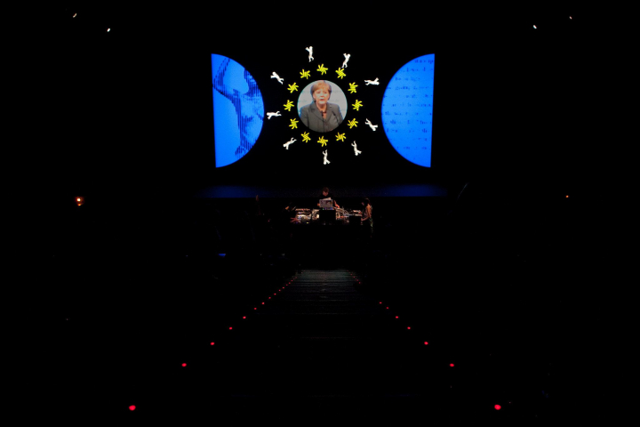 Nota del editor: a petición de autor, añadimos que "€urovisions es un espectáculo audiovisual creado y ejecutado en directo por Karol Rakowski (Polonia); Noriko Okaku (Japón / Reino Unido); Farah Rahman (Holanda) y Malaventura (España) con el apoyo del colectivo inglés The Light Surgeons y la coordinación técnica y artística de ZEMOS98".