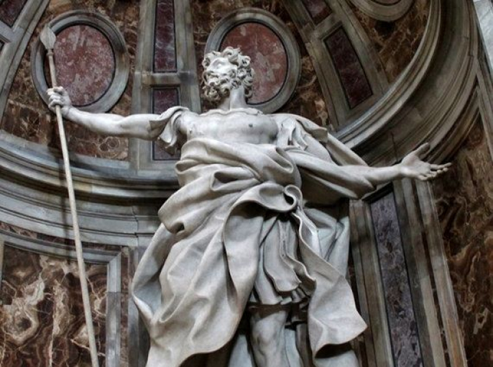 Arriba: el malvado, histriónico e imprevisible Lex Luthor (Jesse Eisenberg) observa el resplandor de la kryptonita en Batman v. Superman: El amanecer de la justicia (Zack Snyder, 2016), © Warner Bros. Entertainment Inc. Abajo: San Longino (Gian Lorenzo Bernini, 1639), © Basilica di San Pietro in Vaticano.