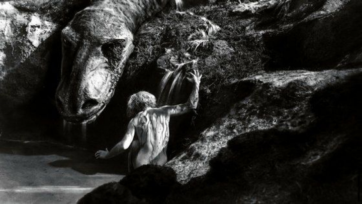 Arriba, el héroe Siegfried se baña en la sangre del dragón Fáfnir en el film de Fritz Lang Los nibelungos (1924), © Decla Bioscop - The Kobal Collection. Abajo, el ojo de Smaug en El Hobbit: Un viaje inesperado (Peter Jackson, 2012), © Warner Bros. Entertainment Inc. Del muñeco a la criatura digital, de 16 a 48 fotogramas por segundo, los cambios son epidérmicos: de fondo palpita la misma la misma ansia de dar vida a la fascinante pesadilla del dragón.