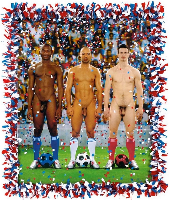 La pregunta es: ¿estamos dispuestos a hacerlo en serio? Si en las pantallas y el papel cuché se repiten algunos de los estereotipos de la feminidad más chabacanos trasladados a la masculinidad, es de esperar que los museos aporten otras perspectivas. Recordemos los dos carteles para las exposiciones del Leopold y el d'Orsay. En el primer caso tres gloriosos desnudos frontales -cada uno de un color de piel, como los reyes magos, y con calcetines alusivos a la bandera francesa- y en el segundo un trasero elevado a la categoría de epifanía mitológica. En una lectura inicial podríamos convenir en que algo se mueve, sí, ya que proponen visibilidades alternativas: por un lado, al fin los penes y los testículos se liberan de las hojas de higuera; por otro, lo anal deja de ser un tabú de la masculinidad; por último, la elección en ambos casos de obras Pierre et Gilles, adalides de un cierto erotismo gay, parecen anunciar discursos que se escapan de la hegemonía heterosexual. Sin embargo, todo resulta ser bastante menos atrevido: el cartel de Viena fue retirado por escandaloso, el de París muestra al dios olímpico de espaldas sólo para evitar los problemas de su predecesor, y en ninguna de las dos exposiciones se trabaja la representación del deseo homosexual en profundidad. En resumen, que no han habido más pelotas que las de los futbolistas: nueve en total y, al parecer, sólo tres realmente tolerables.
