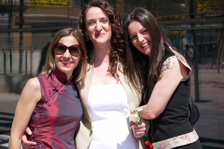 Los responsables reunieron en una asamblea a los cientos de amigos y familiares que allí estábamos diciéndonos que había muchas personas accidentadas graves o con estrés postraumático en distintos hospitales, y que nos iban a pedir datos por grupos de familiares y amigos para localizar antes a nuestros seres queridos sin localizar, pues los bolsos y las maletas estaban la mayoría desperdigados. Y nuestro grupo entró en una salita y fue un rato muy emotivo y compenetrado, pues solo hablábamos de nuestra Carla: su pelo, ojos, estatura, demás datos físicos, dos cicatrices y lunares, pendientes: ¿Ropa?, "A saber lo que se ha puesto"; "seguro que de pendientes lleva los aros"; ¿y sortijas? "Uf, un montón, menuda es la niña" , "Ah, y zapatillas cerradas, que le dije ayer por la mañana que iba a llover". "Pues seguro que llevaba la rebeca verde, seguro". Y yo, como madre, les di saliva para la identificación por ADN. Eso fue a las doce de la mañana. Esperábamos la dirección del hospital para salir de allí.