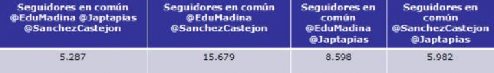 ¿Cómo son las comunidades de @EduMadina @SanchezCastejon y @Japtapias?