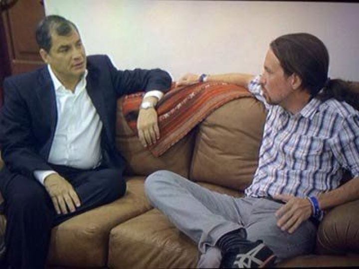 Pablo Iglesias con Rafael Correa, presidente de Ecuador. Fuente: Podemos