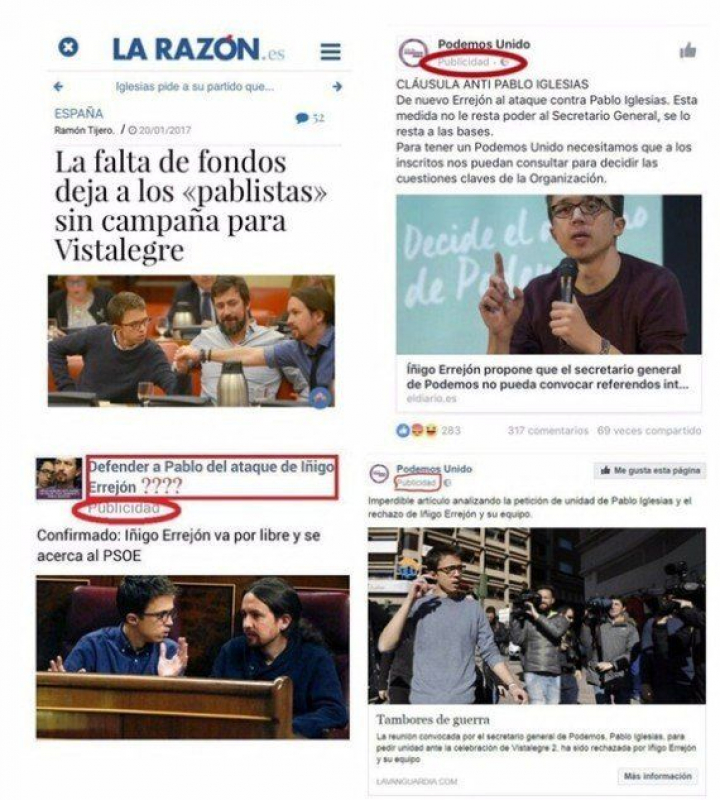 La charla tiene lugar otra mañana -jueves, 27 de enero- en la que Iglesias se ha paseado por radios y teles, practicando el buenismo, mientras desde hace días en las redes sociales como Facebook siguen apareciendo publicidades pagadas contra la figura del portavoz en el Congreso de Podemos, y todavía hoy, numero dos del partido.