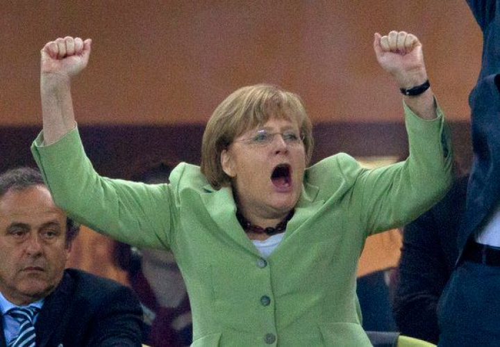 El collar fetiche de ambar al que se aferró durante el Alemania-Grecia de la Eurocopa evidencia que Merkel es tan supersticiosa como un torero. Foto: GERO BRELOER / GTRESONLINE.COM.