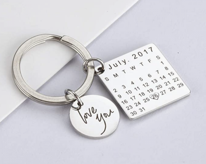 Este regalo se puede convertir en uno de los recuerdos más memorables. Se trata de un llavero que se puede personalizar: dentro de su calendario puedes marcar con un corazón una fecha, y dentro de su círculo se puede escribir un mensaje.