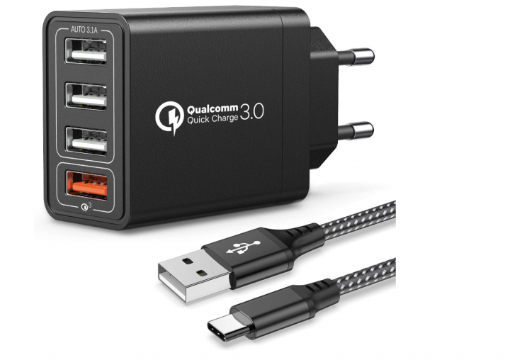 Con este cargador de móvil con 4 puertos USB vas a poder disfrutar de una carga rápida y simultánea en varios dispositivos. Si tienes un MacBook, este cargador promete cargarlo completamente en solo 2 horas, todo gracias a que tiene una potencia de hasta 65W. Soporta diferentes protocolos de carga y, a su vez, es compatible con una amplia diversidad de marcas. Por otra parte, se incluye un cable cargador de móvil muy resistente, que se suma a la seguridad que brinda este cargador multipuerto frente a problemas como el sobrecalentamiento.