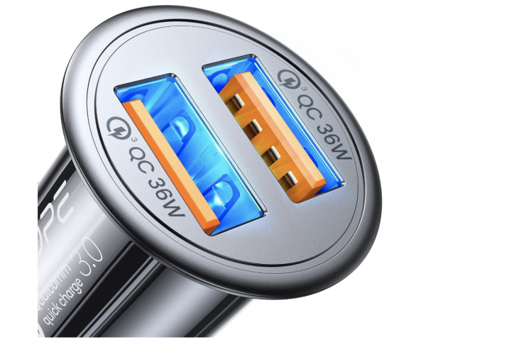 Con este cargador de móvil para el coche puedes conectar dos dispositivos y cargarlos a la vez, así que si vas con tu amigo o pareja, podrás colocar también su móvil. Una de sus grandes ventajas es su diseño, pues está fabricado para adaptarse perfectamente al coche.