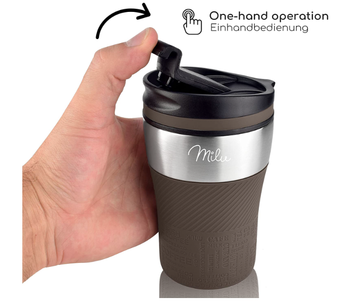 Este termo para el café es uno de los mejor valorados de Amazon. Cuenta con un sellado inteligente y eficaz que tras cada sorbo hace que se cierre para evitar cualquier tipo de salpicadura. Está hecho de acero inoxidable, por lo que es un producto muy resistente, y se encarga de mantener las bebidas frías o calientes durante 6 horas.