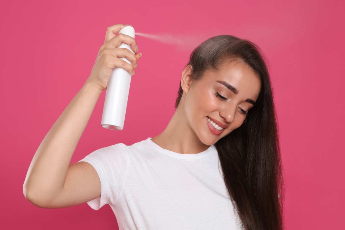 - Rociar: primero secciona el cabello y después aplica el producto a unos 30 cm de la raíz.