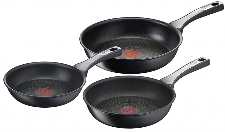 Este set está compuesto por tres sartenes de diferentes tamaños; 20, 24 y 28 cm. Lo mejor es que cuentan con un revestimiento antiadherente que promete durar hasta seis veces más que el de otras marcas, por lo que es muy resistente.
