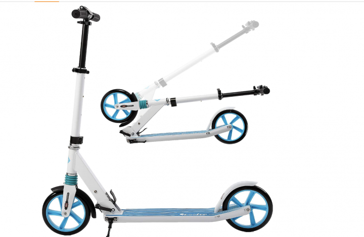 Cuenta con dos ruedas hechas de materiales sumamente resistentes, además de evitar las vibraciones en las superficies, favoreciendo una experiencia más segura. Una de sus mejores cosas es su manillar en T que, además de ser ajustable, tiene unas asas de goma que son muy cómodas de agarrar, facilitando el uso tanto para niños, jóvenes y adultos. Cuenta con un sistema de frenado doble, por lo que es mucho más confiable y eficaz.
