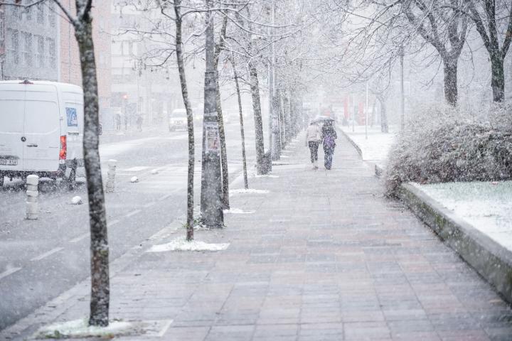 En cuanto a las nevadas, la AEMET pronostica que las mismas se restringirán al tercio norte, con la cota de nieve inicialmente muy baja, pero subiendo rápidamente a partir de mediodía por el cuadrante noroeste peninsular hasta situarse en 1500-2000 metros.