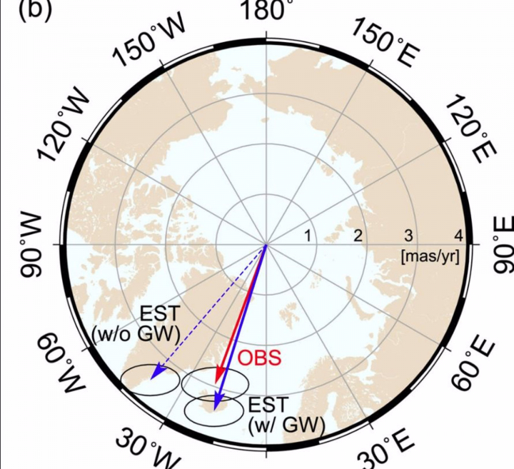 El modelo solo coincidió con la deriva polar observada una vez que los investigadores incluyeron 2.150 gigatoneladas de redistribución de agua subterránea. Sin él, el modelo tenía una desviación de 78,5 centímetros, o 4,3 centímetros de desviación por año.