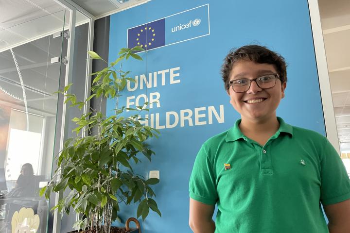 Atiende a El HuffPost en la Oficina de Relaciones con las Instituciones de la UE que tiene UNICEF en la capital belga, acompañado de su madre, que lo cuida, lo anima y lo admira a unos metros. Va de verde, esperanza y rama, es extremadamente educado y se las sabe todas. El tuteo es obligado.