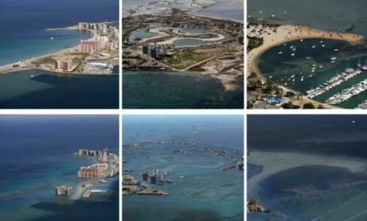 En estos momentos adquiere más vigencia que nunca las fotos que en su día podían parecer catastrofistas y exageradas, compartidas por Greenpeace allá por 2009, en las que se puede ver como luciría La Manga del mar Menor para el año 2050 si la situación continuaba como hasta ese momento.