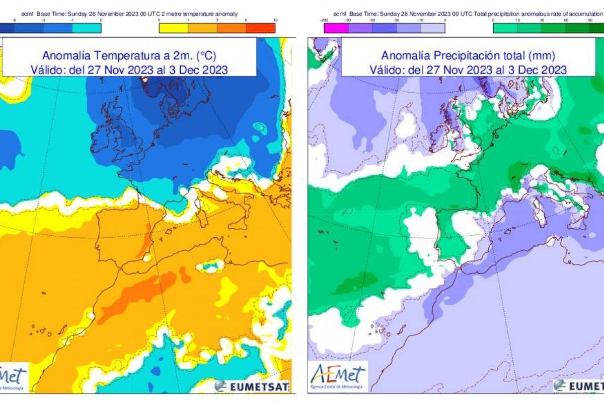 Pese a todo, el incremento será algo pasajero y que acompañará a las precipitaciones durante un pequeño período de tiempo. Respecto a las lluvias, apuntaron que se manifestarán de forma "débil" por el norte y oeste peninsular durante los primeros días, antes de que se extiendan por toda la península a partir del jueves.