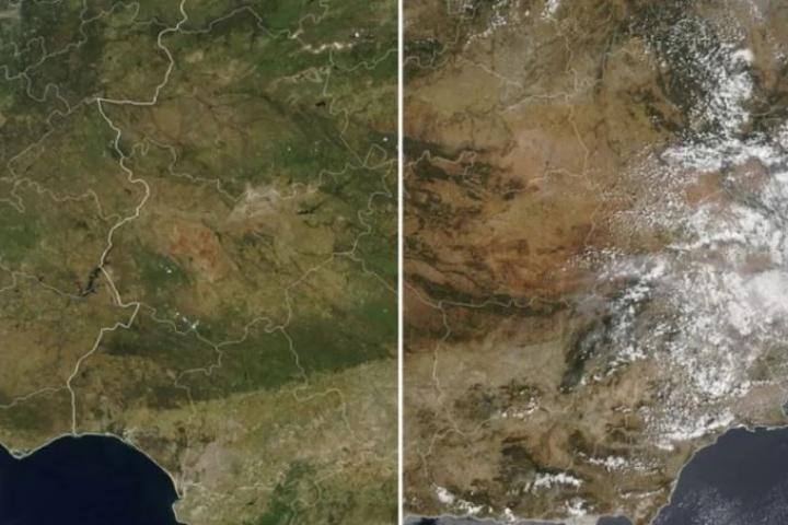 La NASA ha publicado una imagen reveladora sobre España. En ella se compara una instantánea de la superficie terrestre española el 10 de mayo de 2022 y otra del 11 de mayo de 2023. Y la diferencia es abismal.