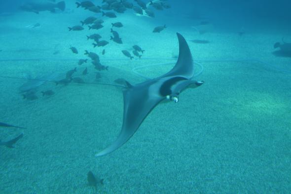 Pese a ello, no es raro que tiburones y rayas crucen las aguas del Mediterráneo, especialmente en verano. Lo inusual es que ejemplares de Mobula mobular, una mantarraya que suele habitar en aguas profundas y abiertas, aparezcan tan cerca de la orilla. Con una envergadura que puede alcanzar los cinco metros y un peso superior a una tonelada, esta especia es la segunda más grande del mundo y, según la UICN, está en peligro de extinción.