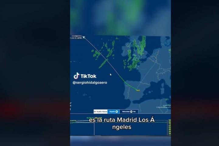 Sergio Hidalgo, un ingeniero aeroespacial, lo cuenta detalladamente en su último vídeo subido a TikTok. “En lugar de trazar una trayectoria recta en el mapamundi, este avión decide ir por arriba para luego bajar. Esto no lo hace solo esta ruta. En Flightradar (web en la que puedes ver en tiempo real todos los vuelos del planeta) todos los vuelos trazan rutas que parecen parabólicas”, comienza.