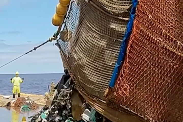 Sacan del océano una 'lengua de plástico' de más de 11.000 kilos